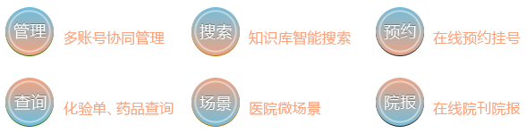 54Doctor 基于微信公眾號開發(fā)了針對醫(yī)院互聯(lián)網(wǎng)業(yè)務(wù)的微信應(yīng)用功能,幫助醫(yī)院便捷地管理醫(yī)院微信公眾號相關(guān)在線服務(wù),包括:醫(yī)院、科室、專家知識庫管理、醫(yī)院科室微信二維碼體系管理,在線預(yù)約、患者信息查詢等功能,使醫(yī)院微信號的關(guān)注用戶可以更為便捷地了解醫(yī)院的信息,并與醫(yī)院通過微信進行動態(tài)交互。