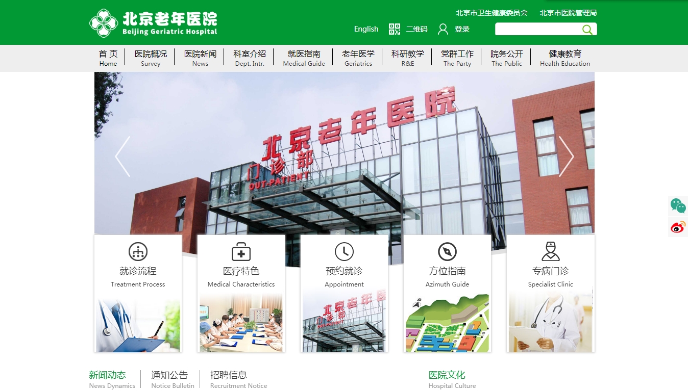 北京老年醫(yī)院是集老年病醫(yī)療、科研、教學(xué)、預(yù)防于一體的北京市屬三級(jí)綜合醫(yī)院,首批北京市醫(yī)保和工傷定點(diǎn)醫(yī)院及工傷康復(fù)定點(diǎn)醫(yī)院,編制床位 800 張。同時(shí)還是北京市老年健康服務(wù)指導(dǎo)中心、北京市中西醫(yī)結(jié)合老年病學(xué)研究所、北京中醫(yī)藥大學(xué)教學(xué)醫(yī)院、北京衛(wèi)生職業(yè)學(xué)院教學(xué)醫(yī)院、中國(guó)科學(xué)院生物物理研究所老年病臨床研究基地、國(guó)家級(jí)本科教育實(shí)踐基地—臨床技能綜合培訓(xùn)中心、北京大學(xué)護(hù)理學(xué)院老年護(hù)理教學(xué)基地、中華護(hù)理學(xué)會(huì)老年護(hù)理專科護(hù)士臨床教學(xué)實(shí)踐基地、北京護(hù)理學(xué)會(huì)老…
